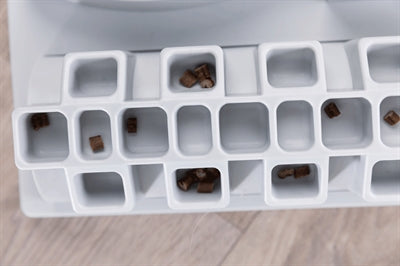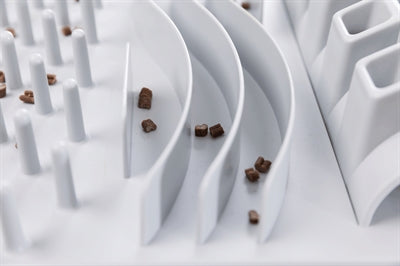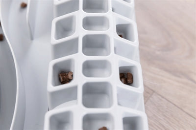 Het uitdagende Trixie Cat Activity Fun Bord bordspel bevat vijf verschillende spellen waarmee je jouw kat kunt uitdagen om op een speelse manier een snack te verdienen. Leg een snack of brokje in de tunnel, in een vakje, een gleuf, tussen de pinnen of in een van de bakjes. De kat zal zijn pootjes en behendigheid moeten gebruiken om de beloning te pakken te krijgen. Dit is ook te doen met gewoon voer, waardoor je kat langer bezig zal zijn met eten en dus minder de kans heeft zijn voer naar binnen te schrokken.