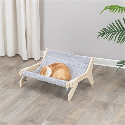 Trixie Hangmat Hout Onbehandeld Grijs 47X24X38 cmDe Trixie Hangmat Hout Onbehandeld Grijs biedt jouw kat een luxe en comfortabele rustplek... Lees meer Lees meer